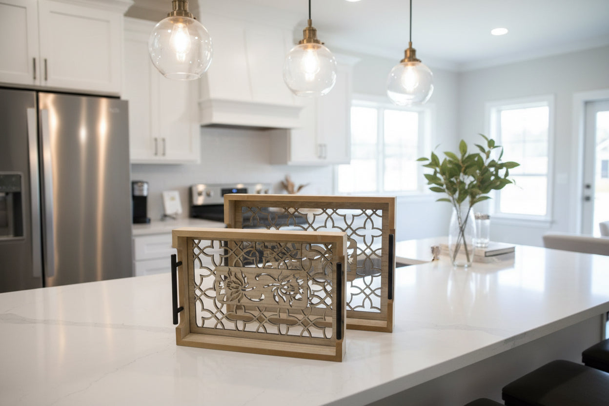Wooden tray with glass base 2 pcs set